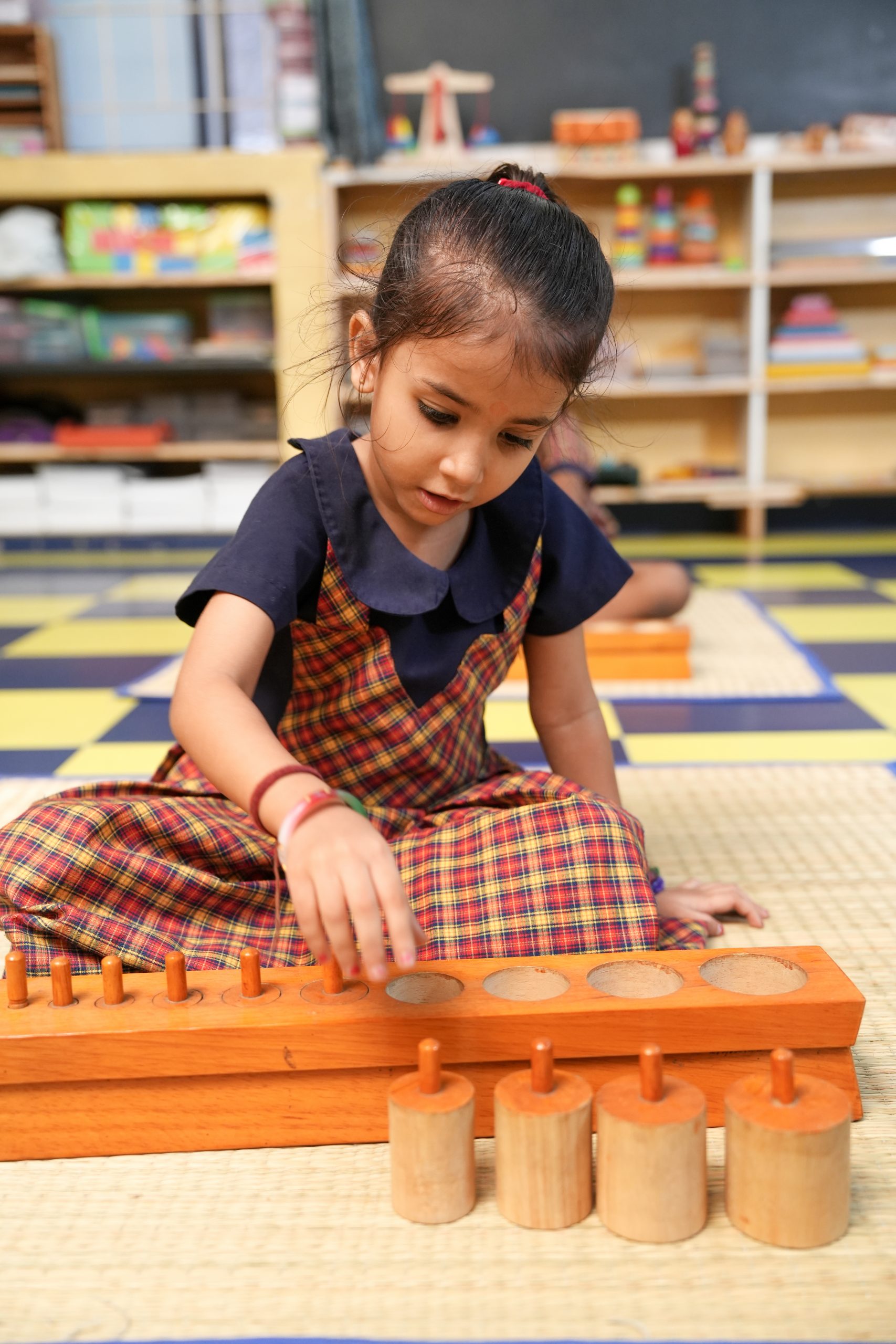 Pink Tower, Brown Stair, Long Rod, Wooden Box – Improves fine motor control and coordination. Fastening Shoe Laces, Buttons, Coins, Wooden Puzzles – Develops hand dexterity and practical life skills.