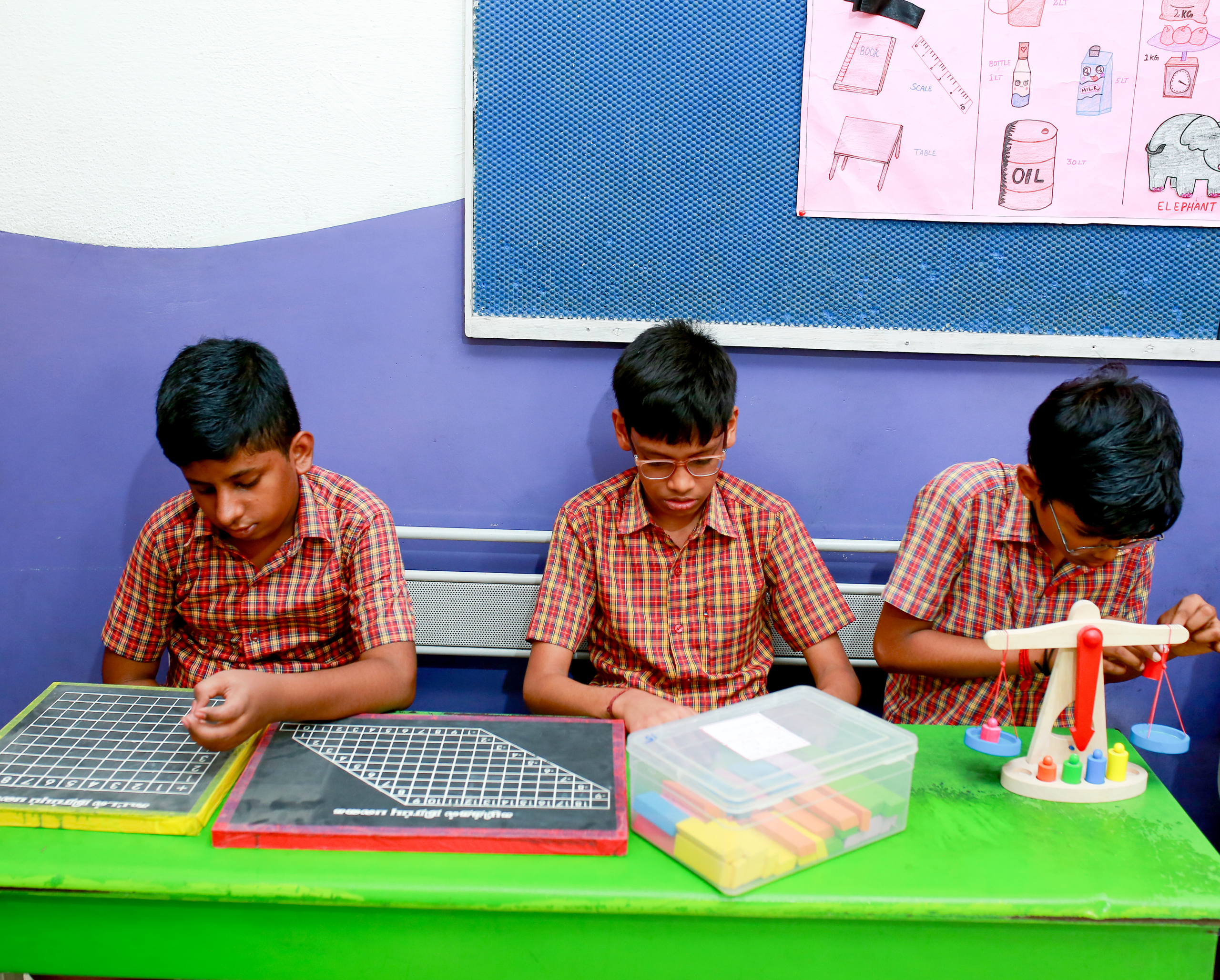 • Concept-Based Learning Models – Addition, subtraction, multiplication, and division made easy with Stripe Boards and wooden models.
